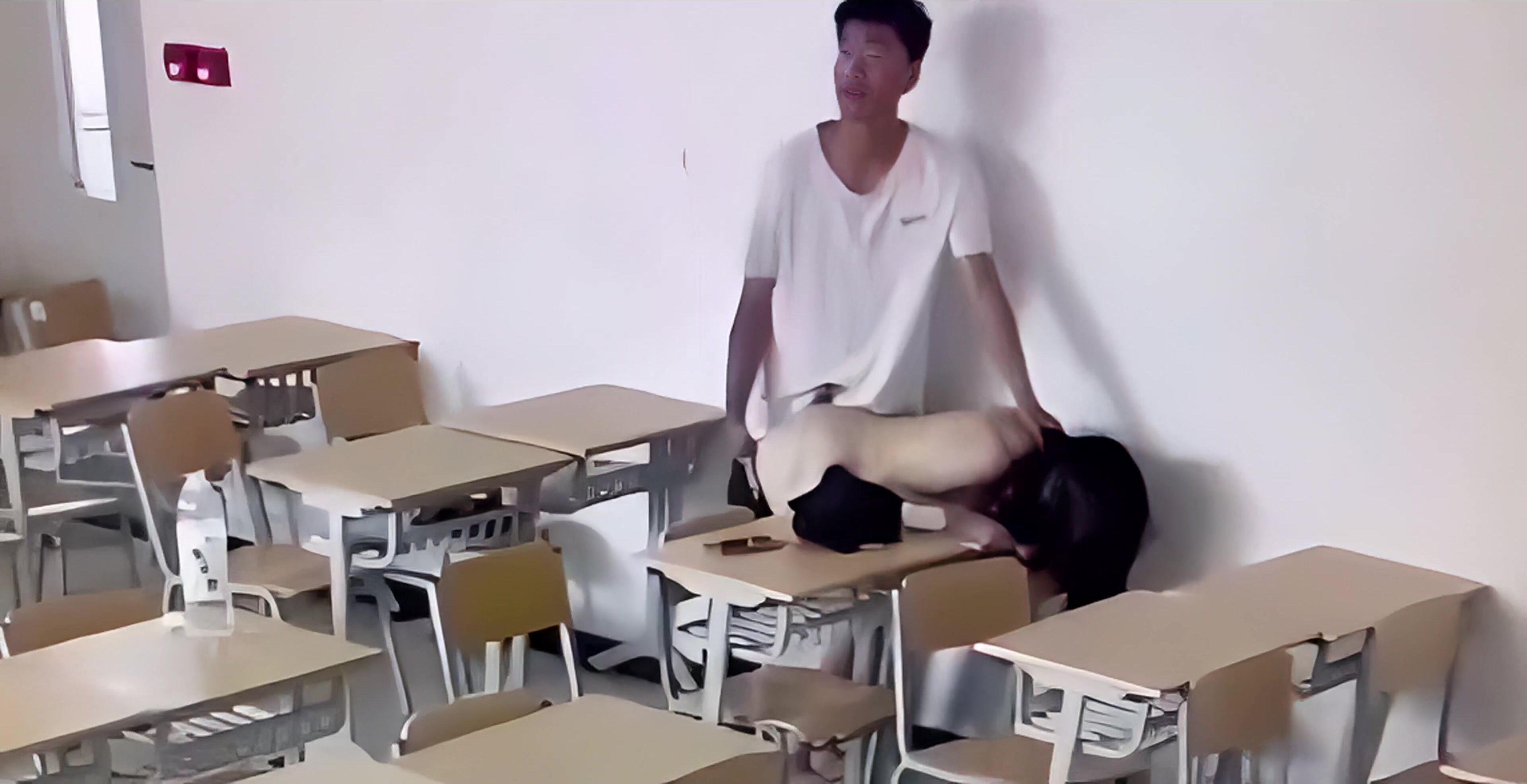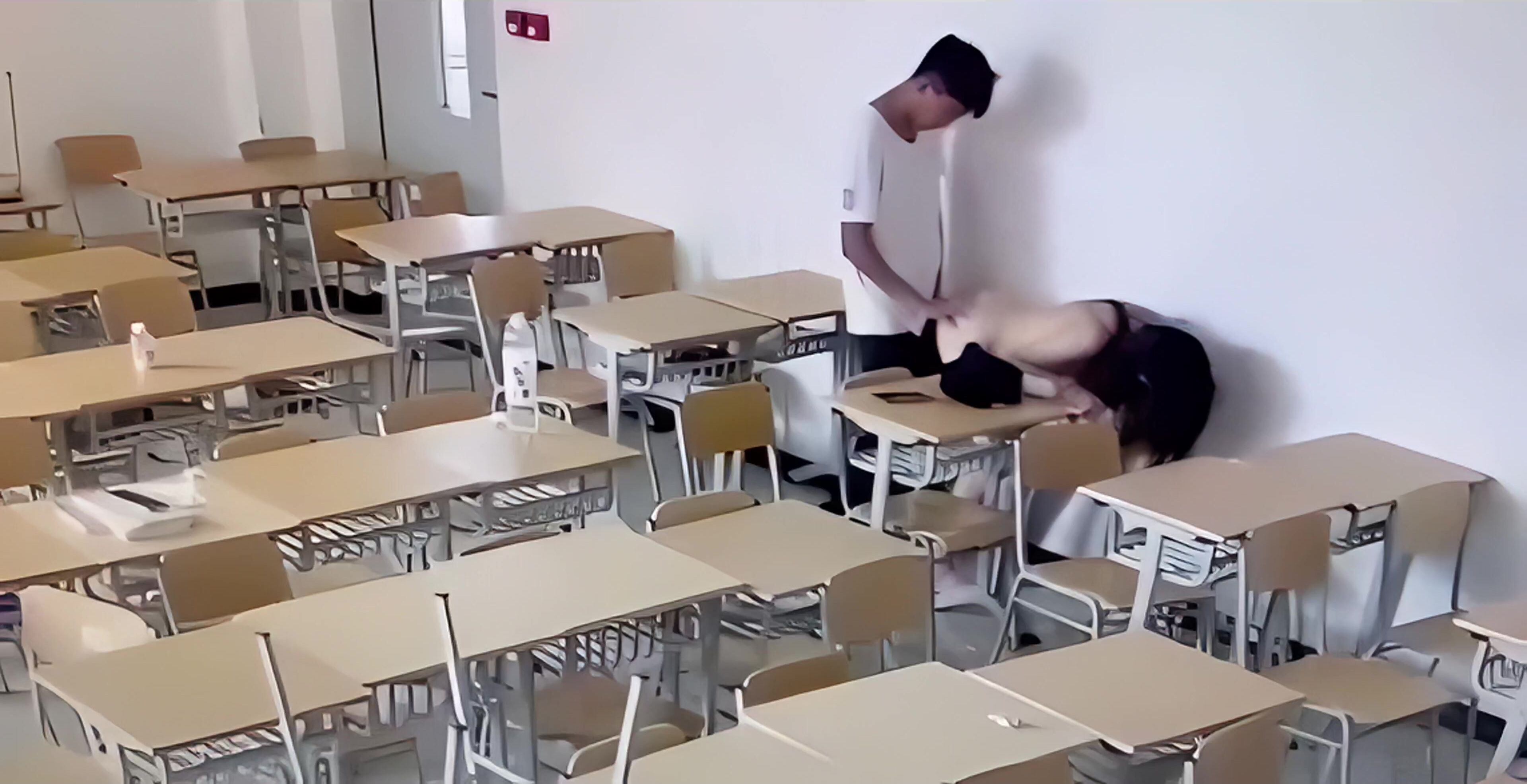 偷拍大學情侶趁教室無人來一炮